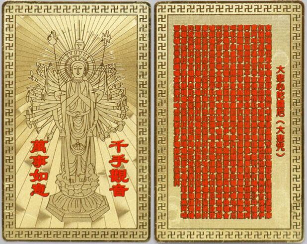 【純金仕上げ】千手観音『大悲心陀羅尼』護符