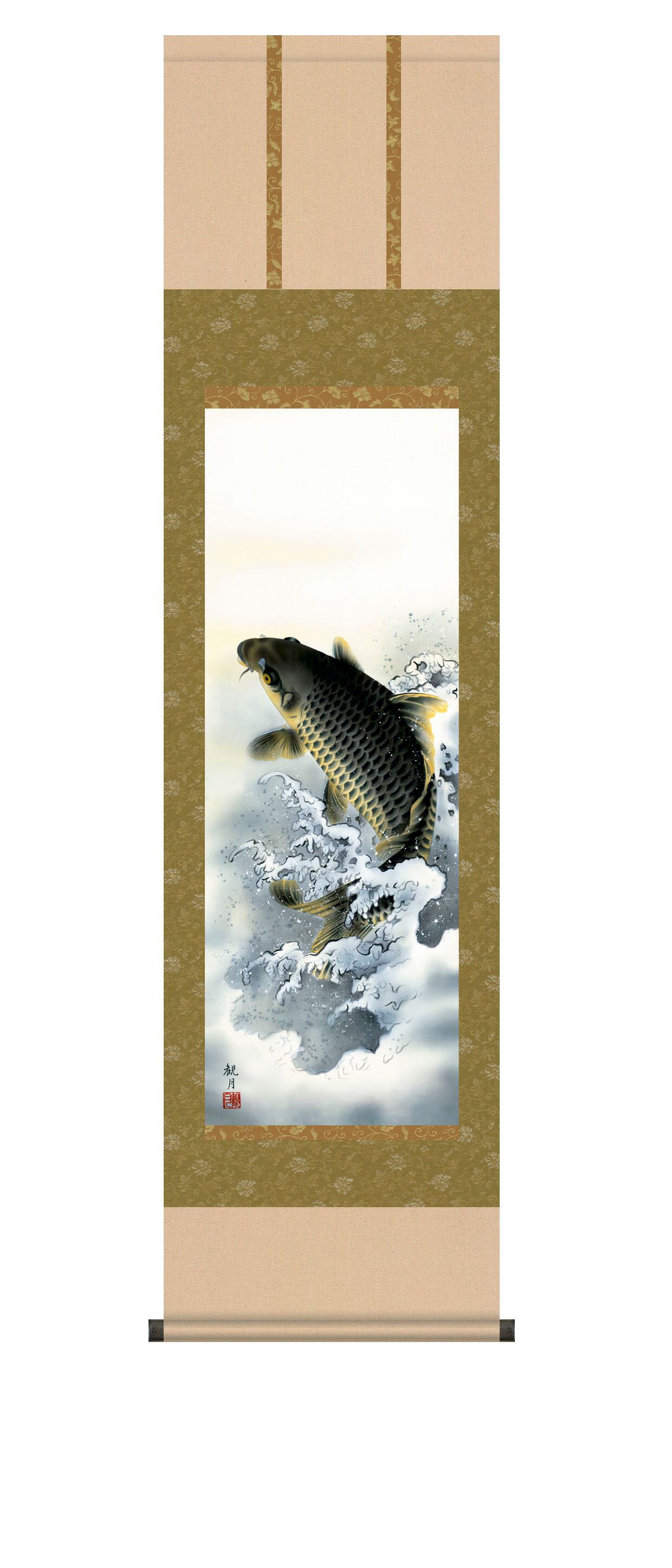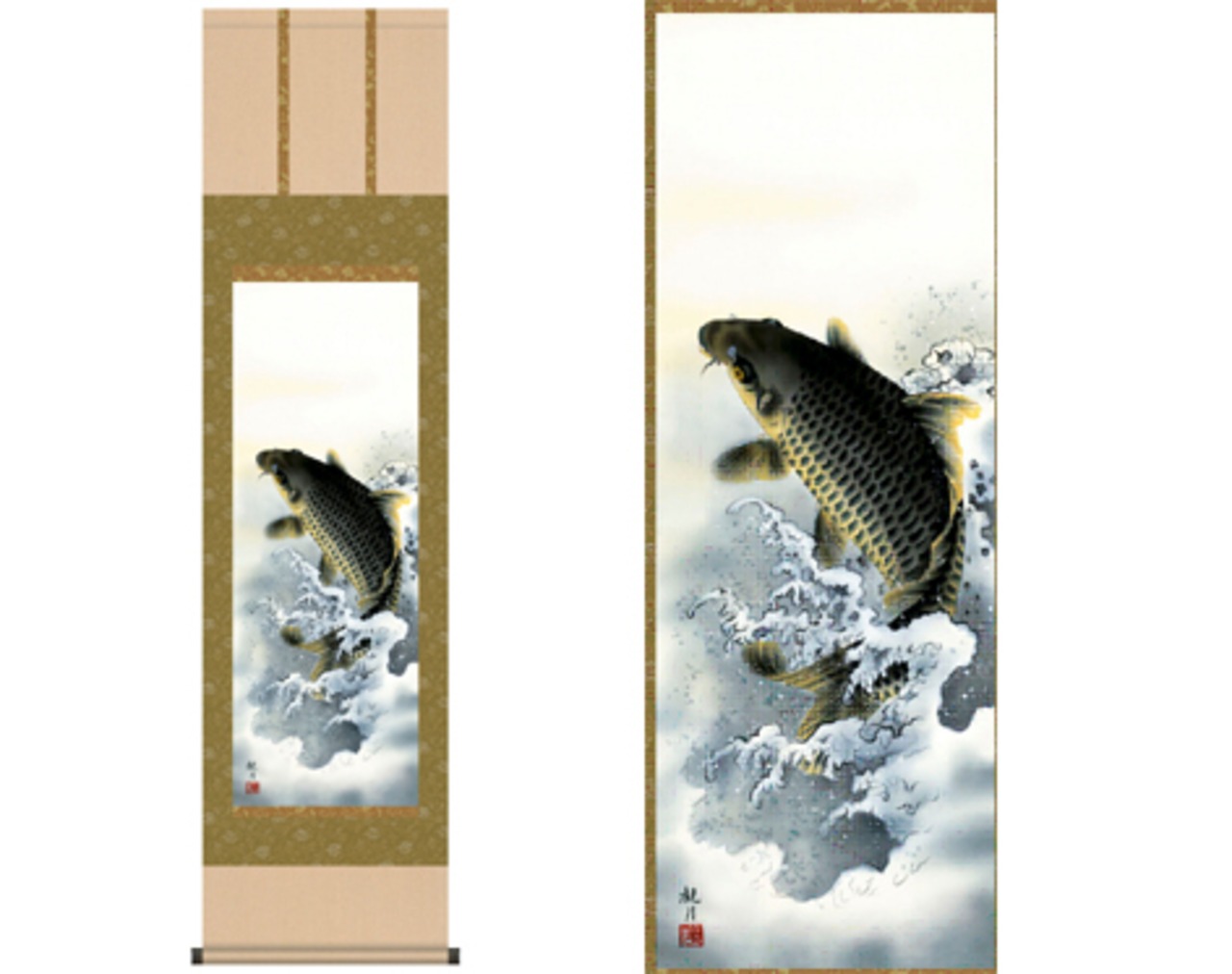 登龍門の故事にもとづき、豪快に水飛沫を上げ勢いよく跳ねる鯉を、
