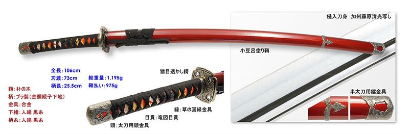 刀身:合金(樋入り刀身/加州藤原清光写し)