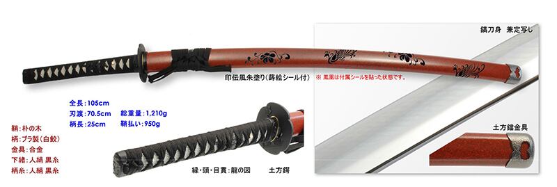 鞘:朴の木(印伝風朱塗り/蒔絵シール付)