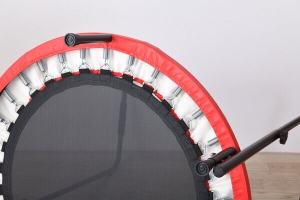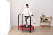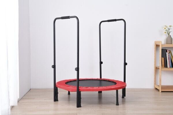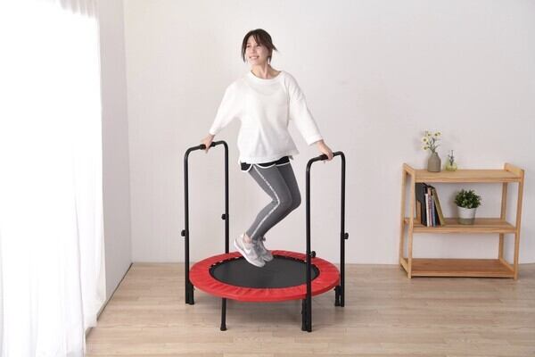 ●全身の筋肉を使うトランポリンは体全体の引き締めに効果的。両手すり付きなので高齢者の方も安心です。雨の日でも、テレビを見ながらでも手軽に運動ができます。