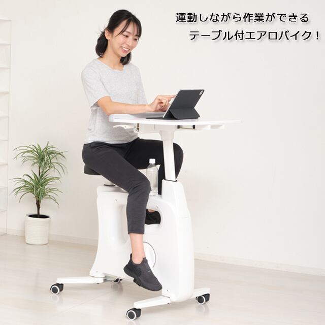 テーブル付 エアロバイク ホワイト