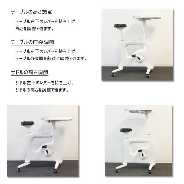テーブルの位置や高さ、サドルの高さをお好みに調整できます。
