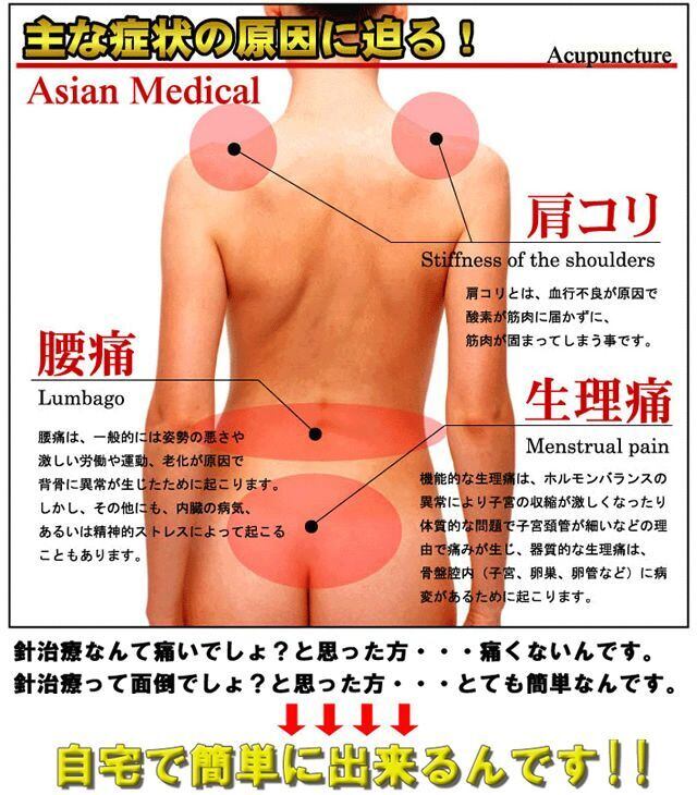 ◆肩こり、腰痛、手足のしびれ、ひざの痛み、スポーツ後の筋肉痛などにも使用できます。