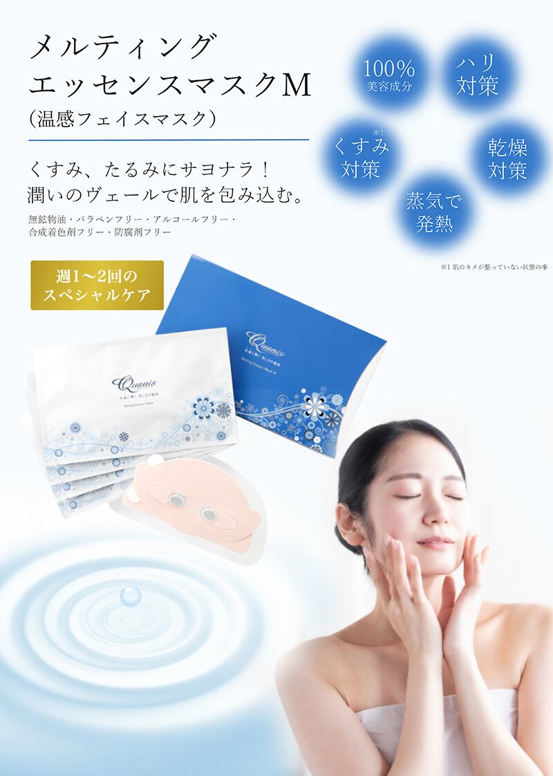 蒸気により発熱したマスクが顔全体をじんわり温めて血行を促進し、毛穴を広げて肌に潤いを与えます。